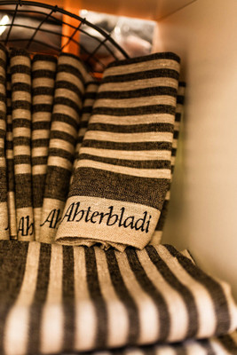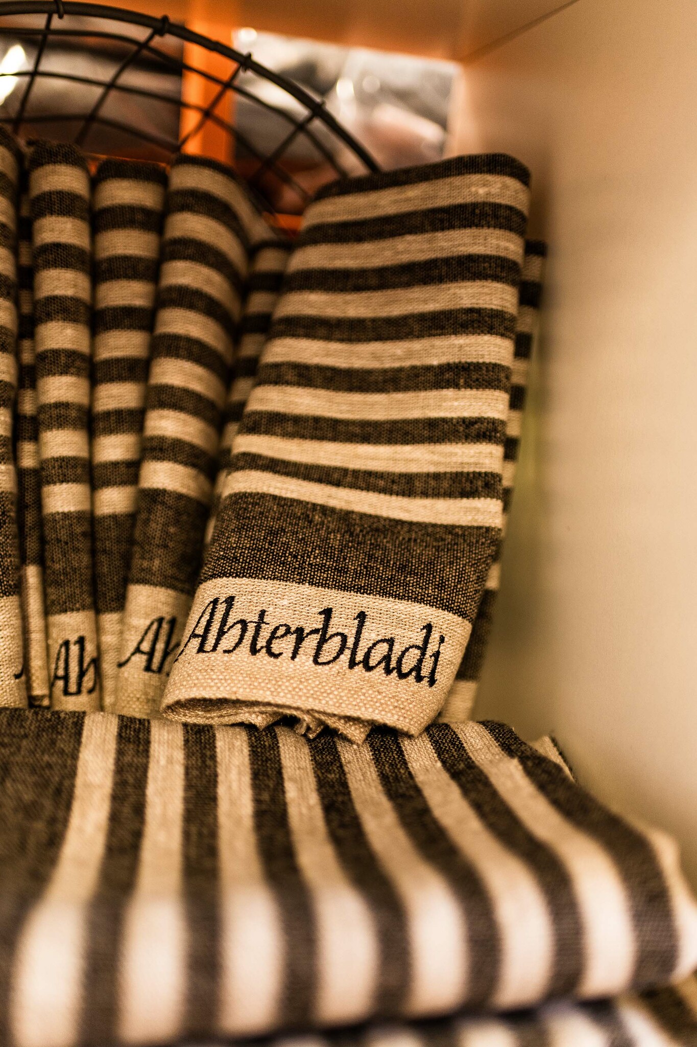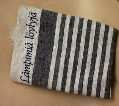 Pefletti pellavasta mustilla raidoilla.