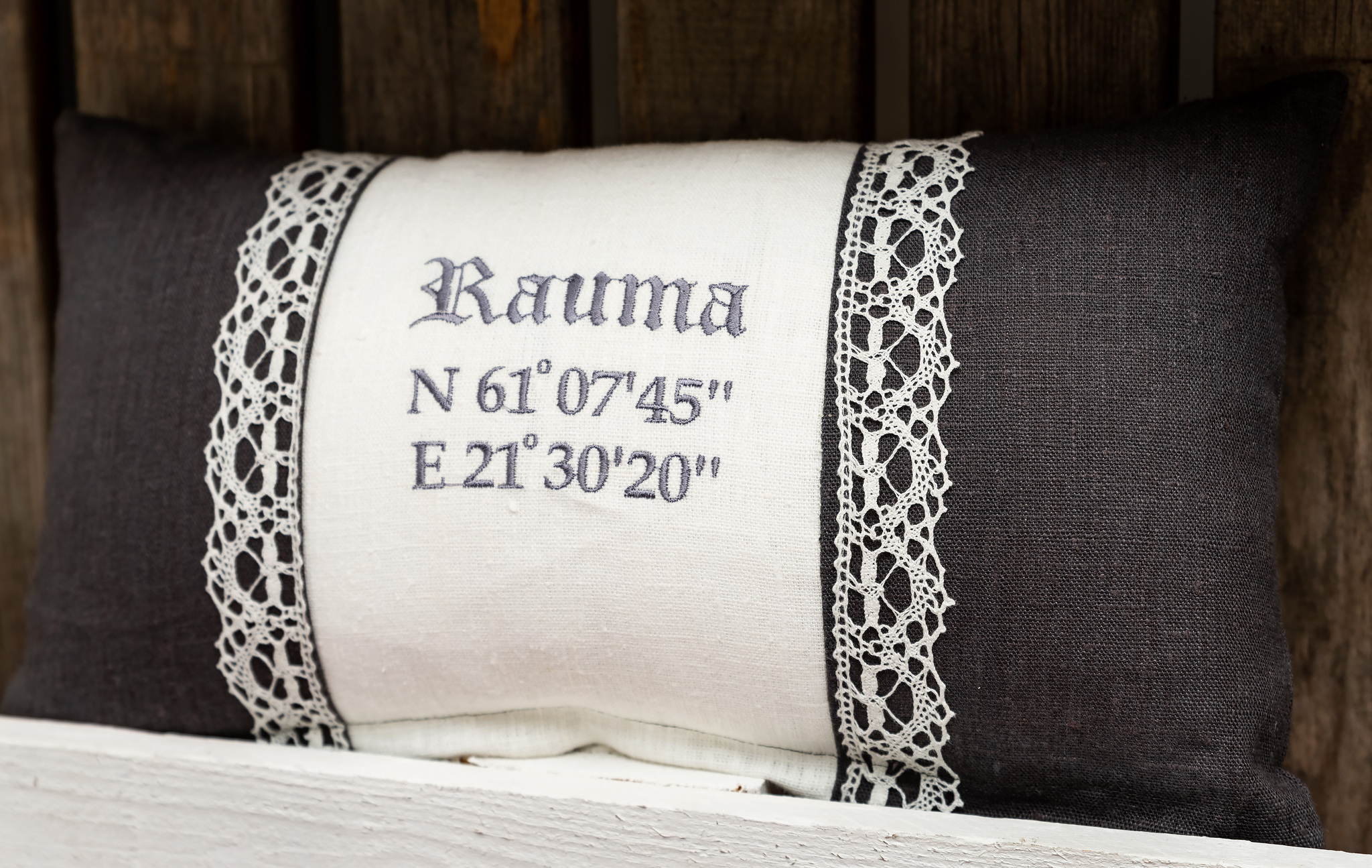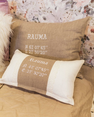 Nyt saatavilla ns. turvallisuustyyny, johon saat brodeerattua esimerkiksi kesämökkisi nimen ja paikan koordinaatit.
